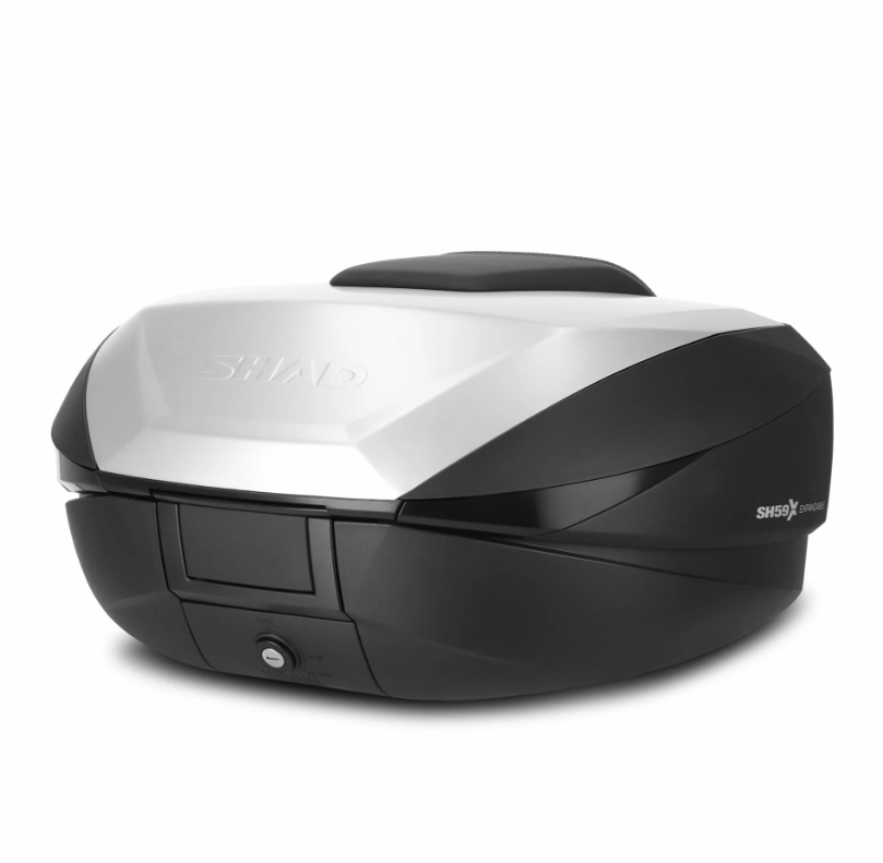 Il bauletto per moto SH59X eXpandible è una valigia moto unica sul mercato. Il suo design innovativo consente di regolare il volume del carico in massimo 3 posizioni in pochi secondi (46, 52 e 59 litri). Offre la massima sicurezza grazie al suo innovativo sistema di chiusura ermetica “Smart Lock System”. Con la sua esclusiva finitura in alluminio, è perfetto per combinare strada e Trail Adventure.